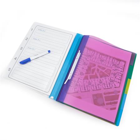 -a mappa 5 különböző színű részt tartalmaz, mindegyik saját jelölővel, és 8 cm lefűző szerkezettel ellátott